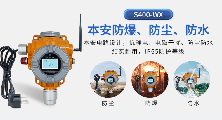 中安探测S400-WX气体探测报警器220v供电款,可自由定制可燃气体或有毒有害气体传感器进行检测,防护等级IP65,防爆证书、消防证书齐全