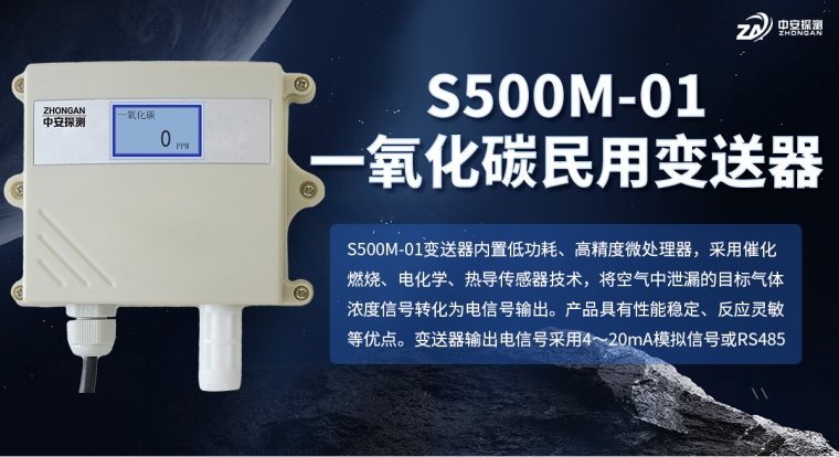 S500M-01一氧化碳变送器内置低功耗、高精度微处理器,采用催化燃烧、电化学、热导传感器技术,将空气中泄漏的目标气体浓度信号转化为电信号输出。
