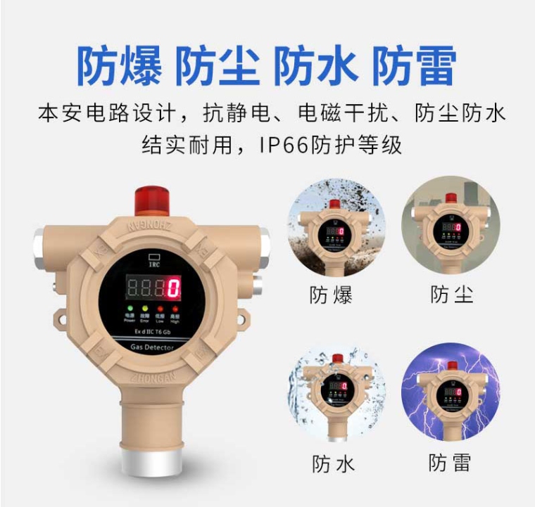 中安探测GT-QD6360防爆型过氧化氢气体检测报警器,可自由定制可燃气体或有毒有害气体传感器进行检测,防护等级IP66,防爆证书、消防证书齐全