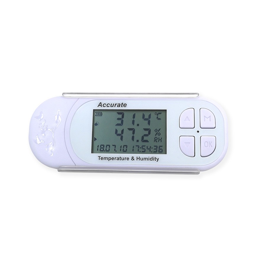 TH3XR U盘式温湿度记录仪是我司研发的超低功耗、宽视角LCD屏幕显示、高精度、大容量存储的记录仪表。使用进口传感器探头,保证了产品的优异测量性能。采用可充电聚合物电池,循环充电使用无需购买电池。实时记录温湿度数据,记录间隔从1秒至24小时任意设置,最多可存储3万组数据。USB通讯接口方便与电脑连接查看和导出历史记录数据,自动生成Excel、曲线、PDF文件。强大丰富的功能,支持本机查看告警记录、历史记录、当天最大值、最小值、平均值、露点值,记录状态显示、电池电量显示、充电指示、通讯指示。灵活的节能配置,可任意配置声报警、光报警、声光报警和短报警,实时显示和休眠模式。支持探头灵敏度、温度湿度校准设置。 应用范围 广泛应用于机房、车间、冷库、仓库、药库、实验室、恒温恒湿箱、图书馆、博物馆、办公室等场所。 产品特点 Ø USB通讯接口方便与电脑连接。 Ø 支持本机查看告警记录和历史记录。 Ø 支持开记录、关记录和整点记录功能。 Ø 进口探头测量精度高,范围宽,一致性好。 Ø 宽视角LCD屏幕设计,大方美观。 Ø 密码保护功能,防止非工作人员误操作。 Ø 摄氏度华氏度可切换,全球通用。 Ø 可显示当天最大值、最小值、平均值。 Ø 记录状态显示、总记录、未读记录一目了然。 Ø 自带时钟功能,年月日时分秒都能显示。 Ø 充电指示和电池电量提示图标。 Ø 可设节能模式与实时显示模式。 Ø 性能可靠,掉电不丢失数据。 Ø 温度湿度可校准 Ø 自带露点分析功能。 Ø 记录间隔可设,1秒至24小时任意设置。 Ø 透明卡扣底座设计,壁挂、吸顶、柜子、桌面、磁铁吸附等多种安装方式。 主要技术参数