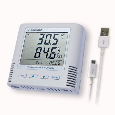 TH11R 温湿度记录仪是我司研发的超低功耗、大屏幕显示、高精度、大容量存储的记录仪表。使用瑞士二代进口传感器探头,保证了产品的优异测量性能。供电采用3V纽扣电池,电池使用时间长达一年以上,轻巧便携,实时记录温湿度数据,最多可存储40万组数据和1000条事件记录,可在本机按天或按日期查看每一条记录数据,也可以用USB数据线连接PC查看或导出Excel文件生成曲线。 应用范围广泛应用于机房、车间、冷库、仓库、药库、实验室、恒温恒湿箱、图书馆、博物馆、办公室等场所。 产品特点USB接口,方便用PC读取数据。 本机可按天或按日期查看每一条数据。 大容量存储,最多可存40万组数据和1000条事件记录。 瑞士进口探头测量精度高,范围宽,一致性好。 超低功耗,一颗纽扣电池可使用一年以上。 LCD大屏显示设计,大方美观。 密码保护功能,防止非工作人员误操作。 摄氏度华氏度可切换,全球通用。 自带露点分析功能。 自带时钟功能。 电池电量提示图标。 可设节能模式与实时显示模式。 性能可靠,失电不丢失数据。 记录周期可设,1分至180分任意设置。 壁挂吸顶结构设计,易于安装。 主要技术参数
