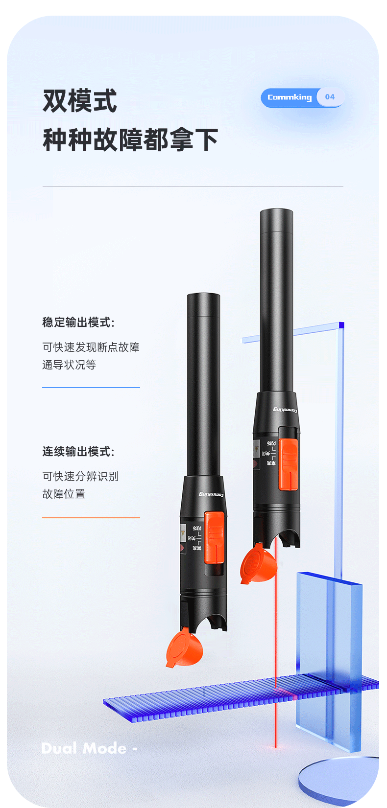 多种光源输出模式,常亮和闪亮,快速发现故障