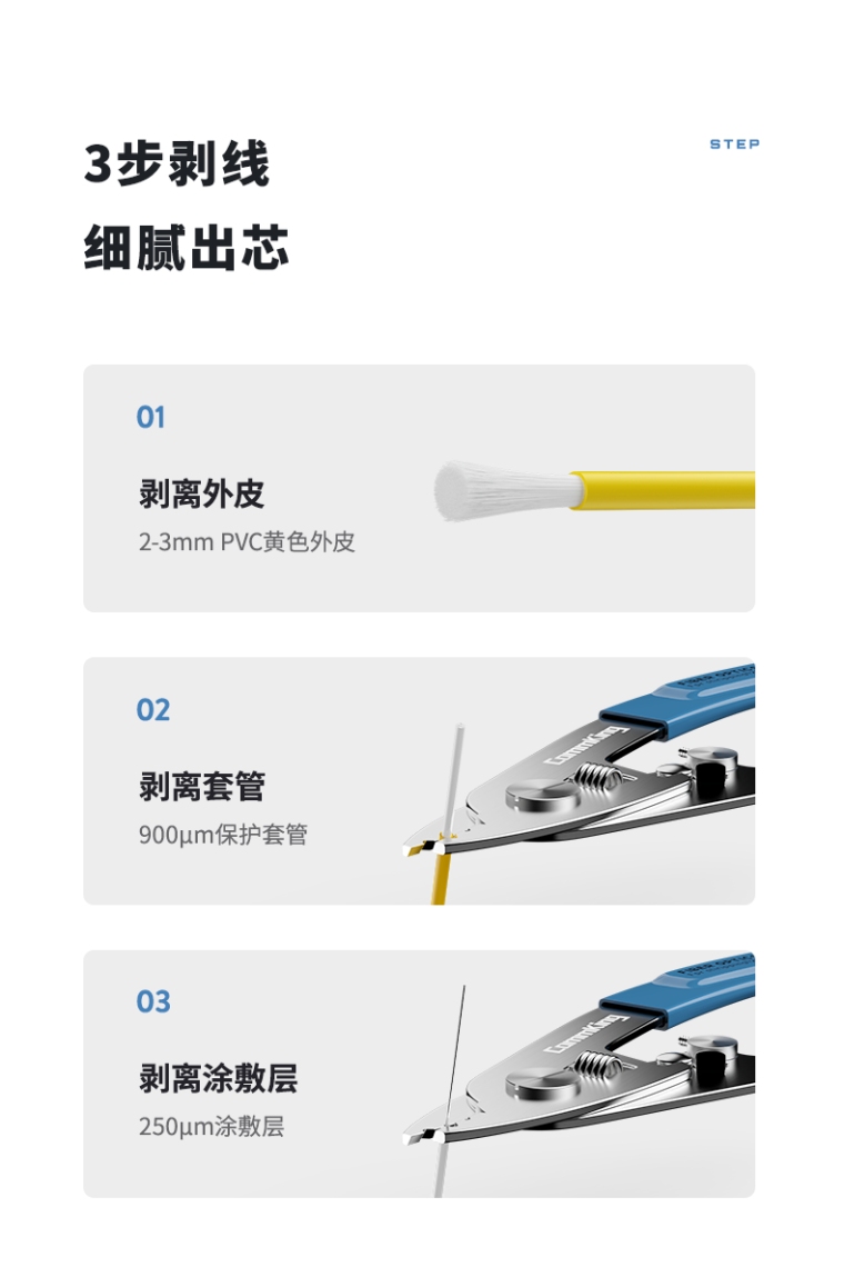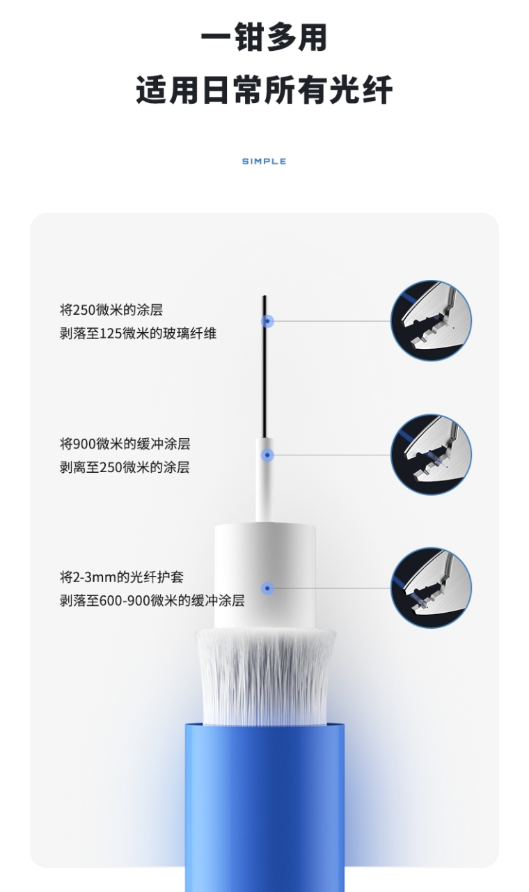 适用多种光纤,分段式剥纤,用途广泛