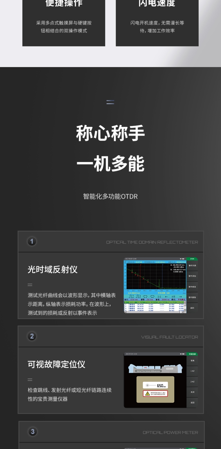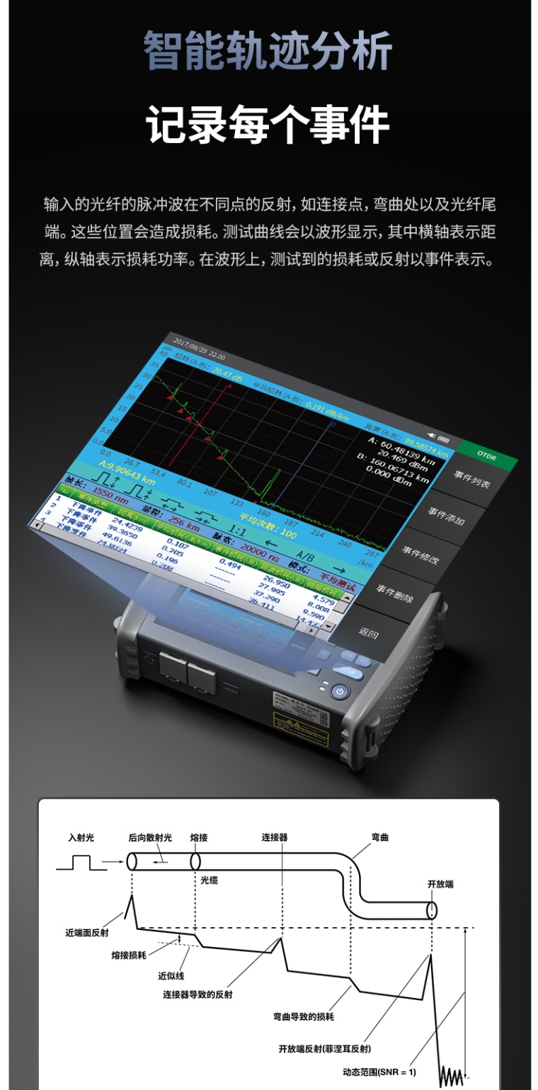 智能化多功能,支持测试光纤断点、衰减点、衰减值、长度。