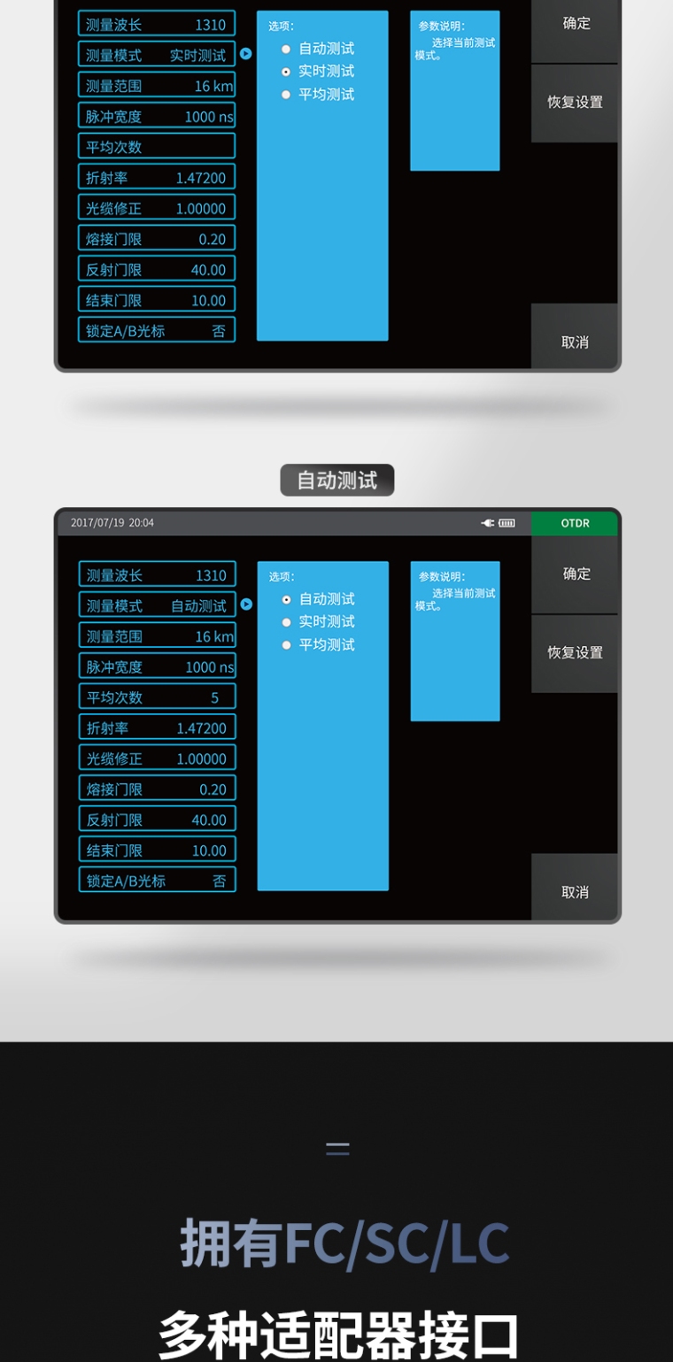 支持SC/FC/LC三种光纤接口,直插适配器测试,无需转接或者跳线连接