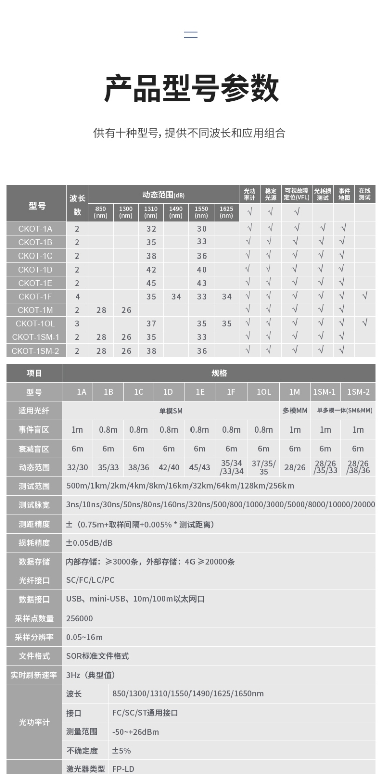 | 光功率计 | 波长 | 850/1300/1310/1550/1490/1625/1650nm |