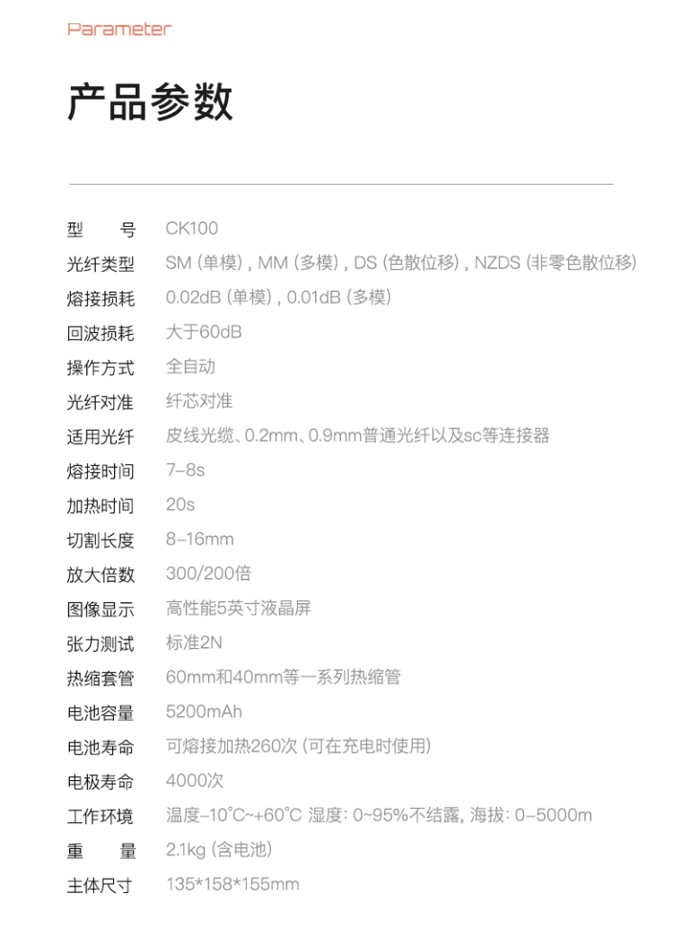 电池容量 | 典型熔接300次,充电时间约为3小时(可在充电时使用) |