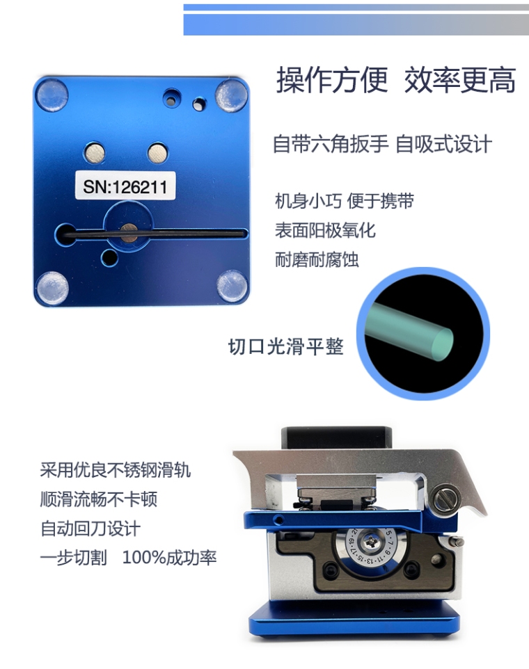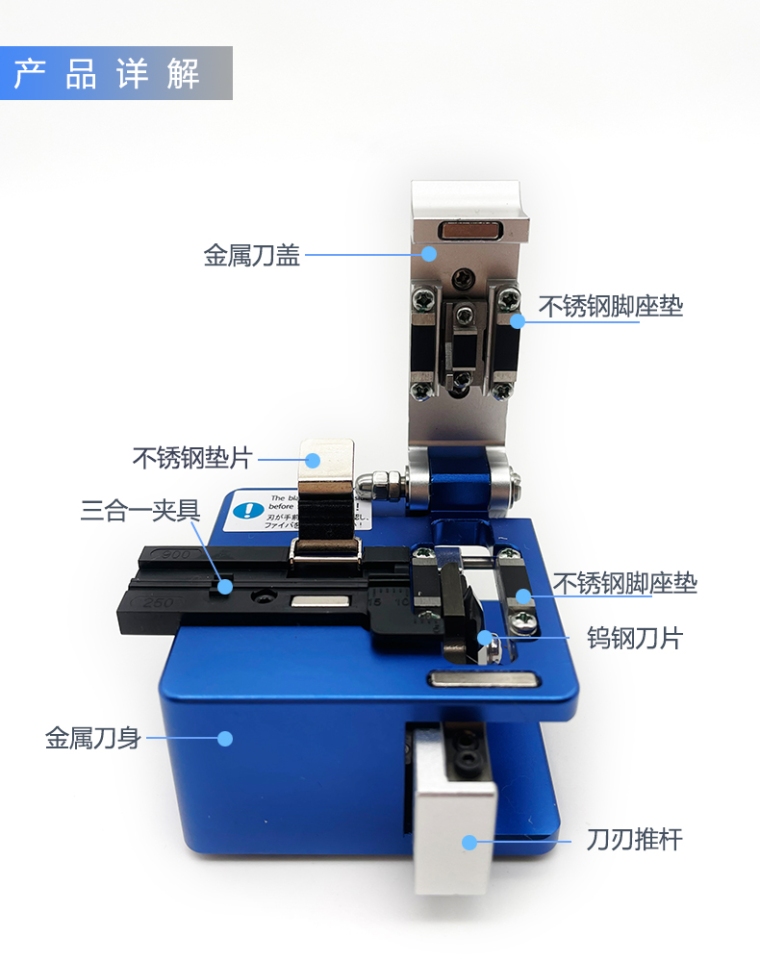 适用切割各种单芯光纤,三合一夹具,皮线/尾纤/裸纤均可