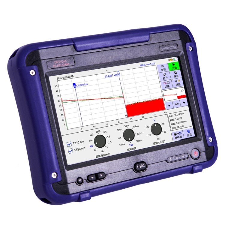 精确、快捷、可靠,易操作。 7英寸室外增强电容触摸屏提供简洁明块友好操作界面,智能一键式操作、即开即侧。 完全支持手势对测试迹线放大缩小功能 OTDR优化模式测试:--针对网络开通提供:高速测试模式--针对网络维护提供:精确测试模式 多种动态范围及波长组合可供选择 具有双波长测试功能,能够直观观察光缆的宏弯点 多种测试模式:平均模式;实时模式;实时转换平均模式;平均模式+实时 具有线路有光告警功能,最大限度保护光器件 具有光模块自检功能,自动检测光模块性能状态 具有中英文输入,拥有友好的输入界面,完全模拟手机输入方式;支持自动保存功能。 具有U盘文件夹建立功能,保证不同光缆的分类存储 大容量锂电池具有过流、过温、过压保护三重保护,工作时间大于10小时 外部电源接口具有输入高压保护,防止高压输入烧毁仪表。 超大容量的存储空间,可通过USB接口接U盘扩展160G存储空间 可远程仪表软件升级