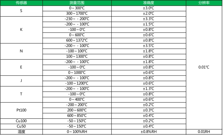系统功能: l 软件全中文界面,简洁美观,操作方便。系统软件可显示每个通道(热电偶、热电阻)的实时温湿度曲线,不同通道曲线采用不同颜色的曲线表示,可随时对曲线颜色进行修改,直观反映被测对象的温度、湿度的波动情况。并记录实测数据,可随时根据需要导出到 Jexcel中,随时查询打印。 l 系统符合国家校准规范(JJF1101-2003》和正在修改意见稿《F101-2016》的技术指标要求。自动计算温湿度偏差、均匀度和波动度,生成符合国家实验室认可要求的原始记录,软件提供原始记录、检定校准证书修改的模板及接口,方便修改。自动进行参考端补偿和传感器检定数据的修正。 l 系统可选配置GPRS远传模块或 Bees无线通讯模块,实现实时数据的无线远传。 l 执行的规程、规范:JJF1101-2003环境试验设备温度、湿度校准规范、GB/T9452-2012热处理炉有效加热区测定方法、QJ1428-88热处理炉温控制与测量、GJB509B-2008热处理工艺质量控制要求、HB5425-2012航空制件热处理炉有效加热区测定方法、GB/T5170-2008电工电子产品环境试验设备检验方法、HB6783-93军用机载设备气候环境试验箱(室)检定方法、JB/T5520-91干燥箱技术条件、AMS2750E高温测量。 技术指标: