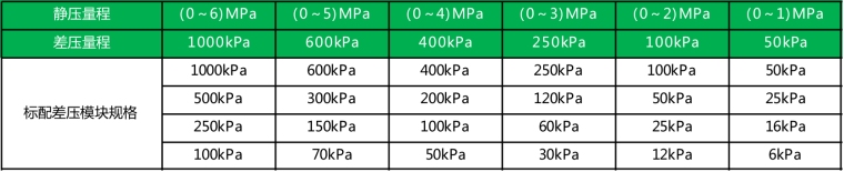 性能指标: ● 工作介质:空气,检定时不需外接高压气源,不需排空气。 ● 静压模块量程;(0~6)MPa。 ● 差压模块量程:(0~1000)kpa。 ● 内部管道管径较粗,且设置了气液分离器,故不怕被校表带水或带油。 ● 计量单位:kPa。 ● 压力显示分辨率:5位。 ● 准确度:压力:0.02级或0.05级,电流、电压:0.02级或0.05级。 ● 稳定精度:±5个字。 ● 标准检定点:量程的0%、25%、50%、75%、100%,自动回程。 ● 自定义检定点:根据需要自行任意设置检定点。 ● 检定点自动稳压时间:(10~240)秒,可调整。 ● 变送器自动检定全程时间(9点稳压):7分钟左右。 ● 安全保护:过压、过流、压力模块故障等保护。 ● 电流输入:1路,0~22mA。 ● 电压输入:1路,0~30V。 ● 压力接口:M20×1.5内螺纹快速接头。 ● 排污口:内径Φ6mm。 ● 供电电源:220V/50HZ。 ● 使用温度:-5℃~50℃。 ● 重量:23kg。 ● 外形尺寸:300(高)*530(宽)*300(深)mm。 ● 自动检定软件:可选。 ● 外接标准表:可选。 静压、差压量程选型表: