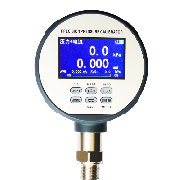 ET-AY系列精密压力校验仪具有压力、电流、电压、电阻、室温的测量功能,可以集成双压力模块,可以检定压力变送器、压力开关、压力表。内置HART功能可替代HART手操器、设置或校准智能变送器量程、强制智能变送器的输出电流在固定数值上(如20mA、12mA、4mA),设置线性或开方功能、可以对压力传感器进行HART清零等。 本产品非常适用于现场及实验室使用,可与全自动压力校验台连接,作为全自动压力校验台的外置压力模块使用,也可与各种压力源连接组成完善的压力校准系统。通过标准RS232可联机检定,实现远程控制、数据处理,打印检定记录及检定证书。 产品特点: ● 压力小到-100kPa,大到60MPa。 ● 具有压力、电流、电压、电阻的测量功能。 ● 内置DC24V电源,可给变送器供电。 ● 内置HART功能(选配功能),替代HART手操器。 ● 可切换中英文显示,使用方便。 ● 温度自动补偿功能。 ● 数据储存:一键快速保存数据,支持同时储存30个检定文件,每个文件多存储110个数据。 ● 自动关机功能:时间可选,不自动关机或5、15、30、60分钟关机。 ● 过载报警,压力测量数值超过110%FS时显示过压并报警。 ● 内置锂电池供电。 技术指标: ● 压力测量范围:-100kPa~60MPa(详细规格参见量程表)。 ● 压力测量准确度:0.02级、0.05级、0.1级、0.2级可选。 ● 电测参数: ① 电流测量范围:(0~30)mA,分辨率 1uA,准确度:0.02%RD 2字 ② 电压测量范围:(0~30)V,分辨率1mV,准确度:0.02%RD 2字 ③ 电阻测量范围:(0~150)Ω,分辨率:0.1Ω,准确度:0.5%F.S ④ 24V电源输出:(24±10%)V(大24mA) ● 压力单位: kPa、MPa、Pa、psi、inHg、inH₂O、mmHg、mmH₂O、bar、mbar、atm、kg/cm²十二种单位任选。 ● HART功能(选配):内置HART功能,代替了HART手操器。 一般技术规格: ● 温度补偿范围:0~50℃。 ● 显示:2.8寸LCD彩屏、5位数字显示、中英文可切换。 ● 电源:内置3000mAH可充电锂电池,5V适配器充电。 ● 通讯:RS232。 ● 使用环境:温度-5~50℃,相对湿度﹤95%(无凝露)。 ● 外形尺寸:185×115×45mm。 ● 重量:0.5kg。 ● 压力接口:M20×1.5。