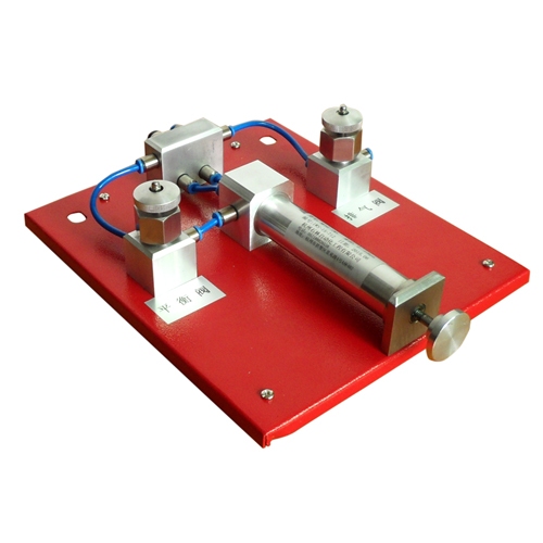 ETYL130型台式气体压力源、采用优质不锈钢及铝合金材料,进口密封件精制而成。 ETYL130是检定压力变送器,压力传感器、普通(精密)压力表以及其他压力仪表的主要设备之一。在数字压力校验系统中,它能够提供稳定的气压压力源。 主要特点 ◆开放式结构,操作简单,维护方便 ◆推拉式加压,可远程检定仪表 ◆超大范围微调,小可控调节细度高 ◆集正负造压于一体,正负压切换方便 ◆密封性能优越,不易泄漏 ◆输出口采用快速活接头,不用扳手便可轻松拆装仪表 技术参数 ◆压力范围:(-95~600)kPa ◆小可控调节度:0.01Pa ◆外形尺寸:300mm×220mm×120mm ◆重量:3kg ETYL132台式高压气体压力源