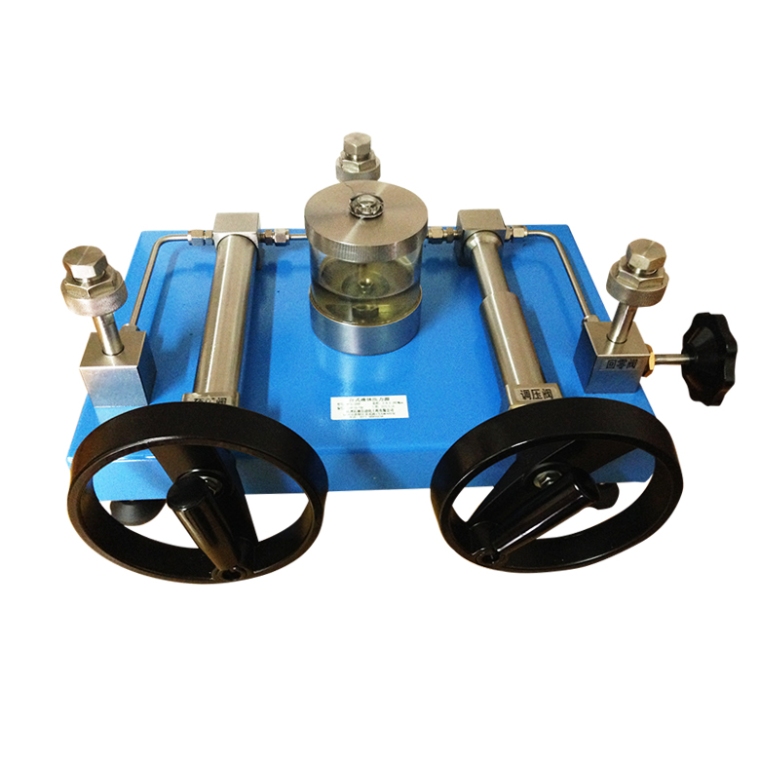 ETYL133系列高压液体压力源,传压介质为油。本产品选用优质进口不锈钢,国外先进的密封技术,经过多种加工工艺精制而成。完全采用开放式结构,更便于维护;螺旋式升降压,升降压平稳,压力瞬间即可稳定,回程检定极易操作。 适宜于:在校验压力变送器、压力传感器、精密(普通)压力表等其它压力仪器仪表时提供稳定、快捷、安全可靠的超高压压力源。主要用于电力、食品卫生、航空航天、**、冶金、计量等行业。 功能特点: ● 进口造压泵,安全可靠,无堵塞。 ● 螺旋式升降压,升降压平稳,回程检定极易操作。 ● 国际先进密封技术,寿命长,无泄漏。 ● 超精细微调,可控压力变化值更精确。 ● 开放式结构,方便清洗与维护。 ● 3个输出口,可同时校验2块表,亦可按照客户需求定制多个输出口。 ● 输出口采用快速活接头,不用扳手便可轻松拆装仪表。 技术参数: ● 压力范围: ETYL133-60M:(0~60)MPa;ETYL133-100M:(0~100)MPa;ETYL133-160M:(0~160)MPa; ETYL133-200M:(0~200)MPa;ETYL133-250M:(0~250)MPa ● 200MPa以上采用蓖麻油作为传压介质 ● 外形尺寸:410mm×310mm×180mm ● 重 量:9.5kg ETYL134台式水介质高压压力源