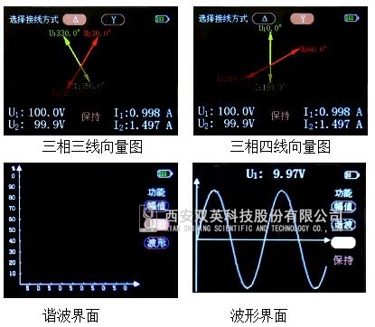一、产品概述 SY2000E数字双钳相位伏安表是我司于2019年新升级的一款手持式数字双钳相位伏安表。智能、快速、省电、精确、安全、稳定;外观设计美观大方,操作方便,广泛适用于继电保护、电能计量、防窃电等工作。 二、功能特点 1、可同时测量4路输入(2路电压、2路电流)信号。 2、2.4寸高分辨率(320*240)真彩色TFT显示,可显示电压和电流真有效值、相位、频率、功率、功率因数等电参数,测量结果以向量图、幅值、相位、功率等多种方式显示。 3、可实时显示电压、电流波形。 4、可显示电压、电流基波幅值、2~50次谐波含有率和柱状图,具有电能质量分析功能。 5、有手动、自动量程:测量时仪表会自动切换至**量程。也可根据个人习惯选择手动量程。 6、工作状态自动识别:仪表处于工作状态时,不会自动关机,避免重复开关机的麻烦。但在没有输入信号时,能自动关机,节省电池消耗。 7、支持软件校准,内部无硬件校准,稳定度好,年变差小。 8、配有蓝牙和USB接口,可以连接安卓手机,利用联机APP扩充更多功能: 1)连接后测量结果可以实时显示,还可以显示电压、电流50次谐波分量,测量结果可以直接存储在手机端。测量结果保存时可以添加文字备注,地理信息,附图等多种信息,方便记录现场。 2)测量结果可以实时共享至微信或QQ好友。 3)可以设定测量起止时间,测量间隔,实现趋势图记录及显示。 4)通过蓝牙接口与手机无线连接,结果实时显示,可以用于人不便读数的现场。 5)USB接口连接时可以实时显示电压电流波形。 三、主要界面