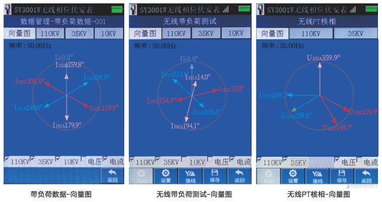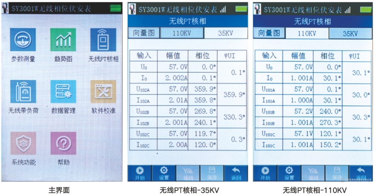 一、主要功能及特点 1. SY3001W无线相位伏安表主机具有2路输入,其中1路电压与仪器内部绝缘隔离,1路电流采用钳形电流互感器输入;从机具有6路输入,其中3路电压、3路电流全部互相隔离,支持三相四线和三相三线接线方式,主从机采用无线通信,安全可靠; 2. 主机1.54英寸LCD液晶显示屏,功耗小,可实时显示电压和电流真有效值、频率、相位、功率因数、有功功率等各种参数,从机3.5寸高分辨率(320*480)真彩色TFT显示,触摸屏操作,可实时同屏显示主从机四相电压和电流真有效值、相位、频率、功率、功率因数等电参数,测量结果以向量图、幅值、相位、一次等多种方式显示; 3. 可以以主机电压或电流为基准,多次测量结果同屏显示进行无线PT核相或者无线带负荷测量; 4. 相位测量为基波相位,抗干扰能力强; 5. 从机可实时显示三相电压、电流波形、基波幅值、2~50次谐波含有率和柱状图,具有电能质量分析功能; 6. 从机支持2G以上大容量TF卡存储,可以存储数据和趋势图,数据方便导入Excel; 7. 从机支持软件校准,内部无硬件校准,稳定度好,年变差小; 8. 从机配有蓝牙和USB接口,可以连接安卓手机,利用联机APP扩充更多功能。 1) 连接后测量结果可以实时显示,还可以显示电压、电流50次谐波分量,测量结果可以直接存储在手机端。测量结果保存时可以添加文字备注,地理信息,附图等多种信息,方便记录现场。 2) 测量结果可以实时共享至微信或QQ好友。 3) 可以设定测量起止时间,测量间隔,实现趋势图记录及显示,可以实现电量参数记录。 4) 通过蓝牙接口与手机无线连接,结果实时显示,可以用于人不便读数的现场。 5) USB接口连接时可以实时显示电压电流波形。 6) 可以结果现场打印至外接蓝牙微型打印机。 7) 可以对测量的数据进行PT 、CT核相,进行接线判别。 8) 可以进行带负荷测试功能。 二、用途 SY3001W无线相位伏安表是理想的无线相位测量及多功能仪表。可以单机测量交流电压、交流电流及电压、电流之间的相位,通过无线连接,实现双机同步测量变电站内部不同位置之间电压、电流的相位以及进行无线PT核相、无线带负荷测试功能。 产品操作简单、使用方便、测量快速、稳定、结果可靠,是电力系统电能计量和继电保护专业,进行二次回路现场检测的新一代仪表,也广泛适用于电气设备制造、石油化工、钢铁冶金、铁路电气化、科研教学等部门。具有以下用途: 1. 对电流电压相位的测量,可用于电压核相,检测继电保护各组PT、CT之间相位关系,检查变压器接线组别;对电能表接线进行检查,判断正确与否; 2. 具有谐波分析功能,可作为电能质量分析仪使用; 3. 具有大容量数据存储,可以作为电量参数记录仪使用; 4. 电流测量精度高,可作为漏电流表使用。 三、主要测量界面
