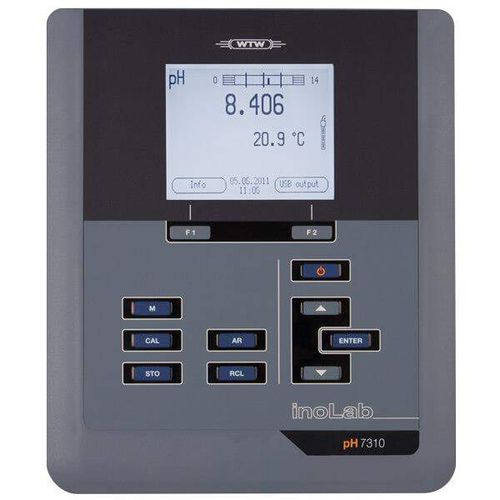 inoLab® pH 7310带背光图形显示,是精确测量pH和ORP电位以及根据GLP/AQA自动记录的正确仪器,适用于所有行业的质量实验室。所有的测量值都会与当前的日期、时间、ID号和传感器序列号一起传输(可以手动输入)。根据要求,该仪表可提供内置打印机