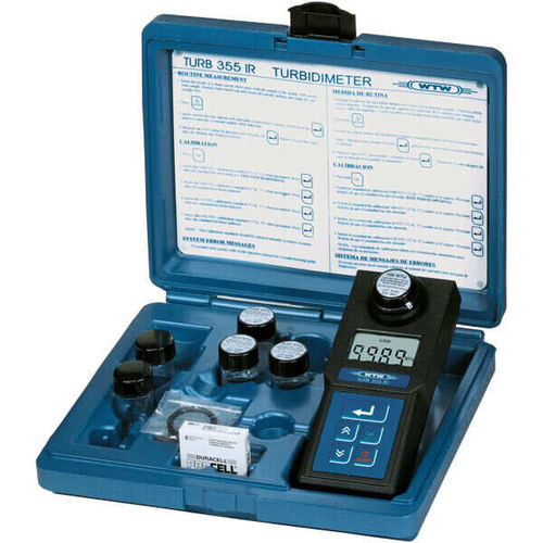 Turb® 355 T以套装形式提供,装在一个方便的小盒子里,内含快速使用说明、0.02 - 10.0和1000 NTU的校准标准、空比色皿和电池。