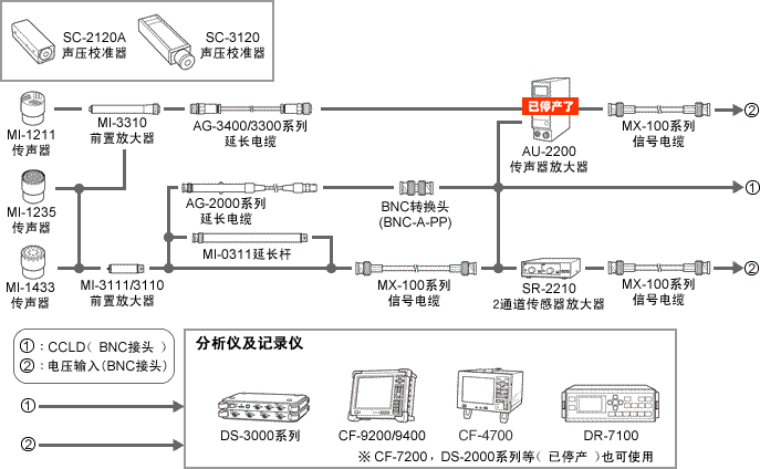 *如希望购买该型号的传声器,前值放大器,请确认传声器放大器AU-2200(已停产)是否有库存。