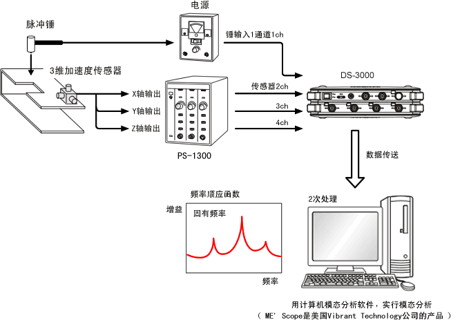 加速度传感器、PS-1300、DS-3000系列、ME' Scope、及计算机为选购件