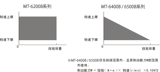 | | 使用温度范围 | 0 ~ +40℃ | | 使用电源 | AC 100 V ±10%、50/60 Hz | | 制动能力 | 只要在下图斜线范围内的便可使用 |