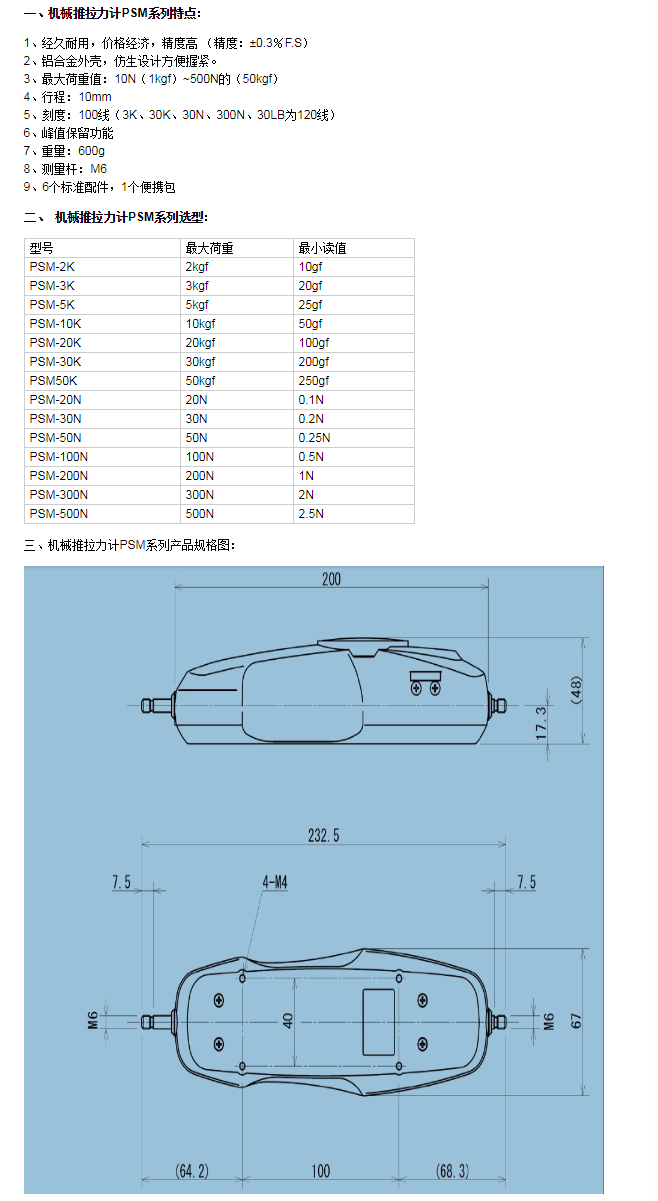 机械推拉力计PSM-50K