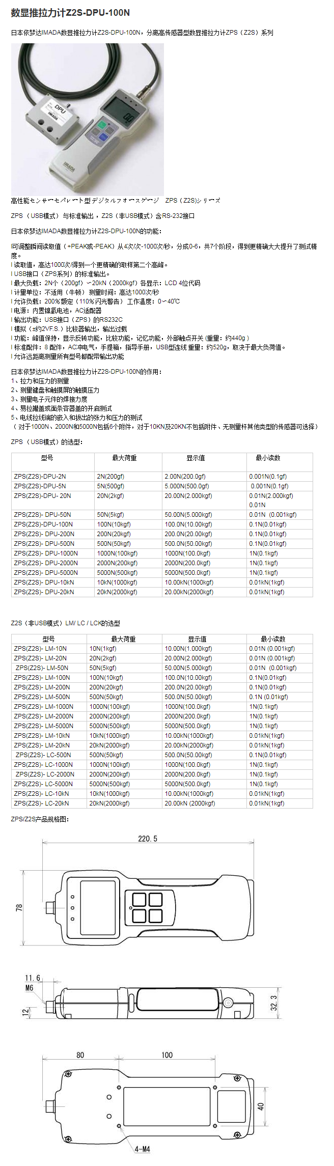 数显推拉力计Z2S-DPU-100N