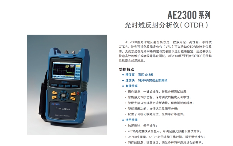 我对您的光时域反射分析仪AE2300产品感兴趣,请发具体的信息及报价,谢谢!