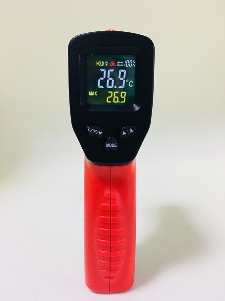 技术指标 | 测量温度范围 | -50℃~550℃ -58℉~1022℉ | 测温精度 | ≥100℃ ±2%,≤100℃ ±2℃ | 测量距离比率 | 12 : 1 | 发射率(可调节) | 0.1~1.0 | 响应时间和响应波长 | 500ms & 8-14μm | 重复性 | ±1% 或 ±1℃ | 解析度 | 0.1℃ 或 0.1℉ | 储存环境温度 | -20℃~50℃(-4℉~122℉) | 操作温度 | 0℃~50℃(32℉~122℉) | 彩屏显示 | √ | 电池电量百分比显示: 0%~100% | √ | 所测温度最大值MAX 显示 | √ | 摄氏度℃/华氏度℉转换 | √ | 数据保持 | √ | 镭射目标显示选择功能 | √ | 低电量显示 | √ | 自动关机 | √ | 一般特征 | 供电 | 9伏电池 | 产品颜色 | 红色+黑色 | 包装 | 每箱数量 | 按实际订单数量 | 外箱尺寸 | 按实际纸箱规格 | 外箱毛重 | 按实际货品毛重 |