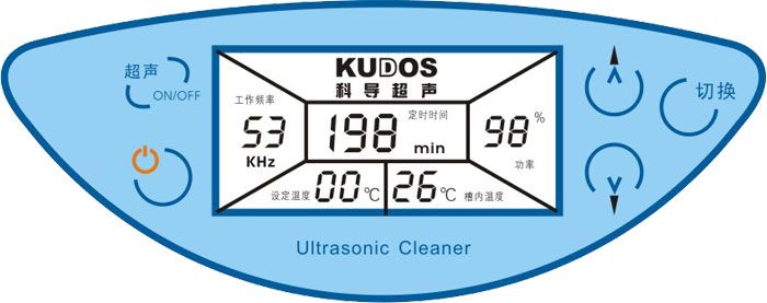 功能和特点: 双频台式超声波清洗器 ·背景光液晶显示屏 ·屏上菜单参数选择 ·35kHz/53kHz两档可切换的工作频率 ·1~199分钟定时范围 ·功率的40~100%,步进1%的连续精细可调 ·槽内水温屏上实时显示(无加热) ·工作参数断电记忆功能
