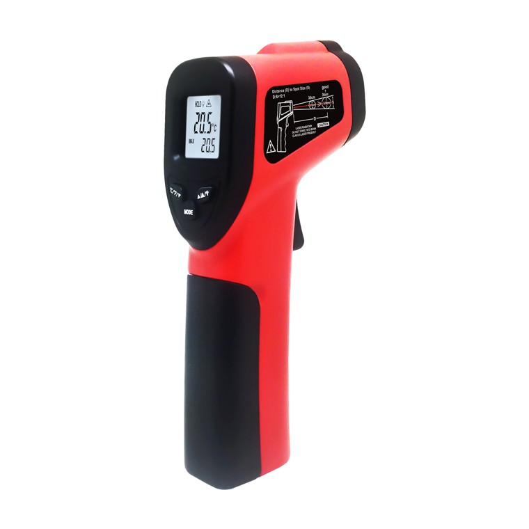 技术指标 | 测量温度范围 | -50℃~380℃ (-58℉~716℉) | 测温精度 | ≥100℃ ±2%,≤100℃ ±2℃ | 测量距离比率 | 12 : 1 | 发射率(可调节) | 0.1~1.0 | 响应时间和响应波长 | 500ms & 8-14μm | 重复性 | ±1% 或 ±1℃ | 解析度 | 0.1℃ 或 0.1℉ | 储存环境温度 | -20℃~50℃(-4℉~122℉) | 操作温度 | 0℃~50℃(32℉~122℉) | 所测温度最大值MAX 显示 | √ | 摄氏度℃/华氏度℉转换 | √ | 数据保持 | √ | 镭射目标显示选择功能 | √ | 背光显示选择开启/关闭 | √ | 低电量显示 | √ | 自动关机 | √ | 一般特征 | 供电 | 2个AAA电池 | 产品颜色 | 红色+黑色 | 包装 | 每箱数量 | 按实际订单数量 | 外箱尺寸 | 按实际纸箱规格 | 外箱毛重 | 按实际货品毛重 |