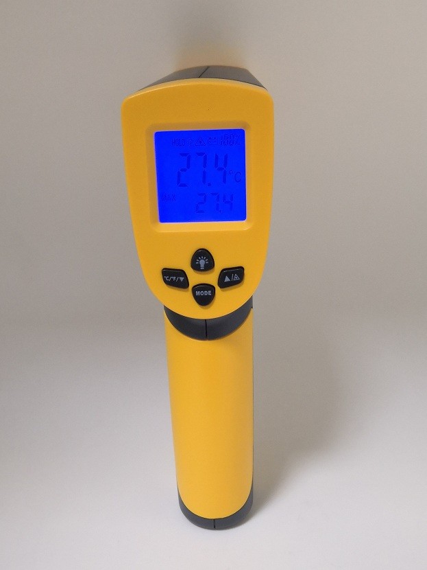 技术指标 | 测量温度范围 | -50℃~550℃ -58℉~1022℉ | 测温精度 | ≥100℃ ±2%,≤100℃ ±2℃ | 测量距离比率 | 12 : 1 | 发射率(可调节) | 0.1~1.0 | 响应时间和响应波长 | 500ms & 8-14μm | 重复性 | ±1% 或 ±1℃ | 解析度 | 0.1℃ 或 0.1℉ | 储存环境温度 | -20℃~50℃(-4℉~122℉) | 操作温度 | 0℃~50℃(32℉~122℉) | 电池电量百分比显示: 0%~100% | √ | 所测温度最大值MAX 显示 | √ | 摄氏度℃/华氏度℉转换 | √ | 数据保持 | √ | 镭射目标显示选择功能 | 双激光 | 背光显示选择开启/关闭 | √ | 低电量显示 | √ | 自动关机 | √ | 一般特征 | 供电 | 9伏电池 | 产品颜色 | 深灰色+黄色 | 包装 | 每箱数量 | 按实际订单数量 | 外箱尺寸 | 按实际纸箱规格 | 外箱毛重 | 按实际货品毛重 |