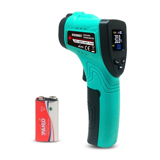 技术指标 | 测量温度范围 | -50℃~380℃ (-58℉~716℉) | 测温精度 | ≥100℃ ±2%,≤100℃ ±2℃ | 测量距离比率 | 12 : 1 | 发射率(可调节) | 0.1~1.0 | 响应时间和响应波长 | 500ms & 8-14μm | 重复性 | ±1% 或 ±1℃ | 解析度 | 0.1℃ 或 0.1℉ | 储存环境温度 | -20℃~50℃(-4℉~122℉) | 操作温度 | 0℃~50℃(32℉~122℉) | 彩屏显示 | √ | 电池电量百分比显示: 0%~100% | √ | 所测温度最大值MAX 显示 | √ | 摄氏度℃/华氏度℉转换 | √ | 数据保持 | √ | 镭射目标显示选择功能 | √ | 低电量显示 | √ | 自动关机 | √ | 一般特征 | 供电 | 9伏电池 | 产品颜色 | 绿色+黑色,黑色+黄色 | 包装 | 每箱数量 | 按实际订单数量 | 外箱尺寸 | 按实际纸箱规格 | 外箱毛重 | 按实际货品毛重 |