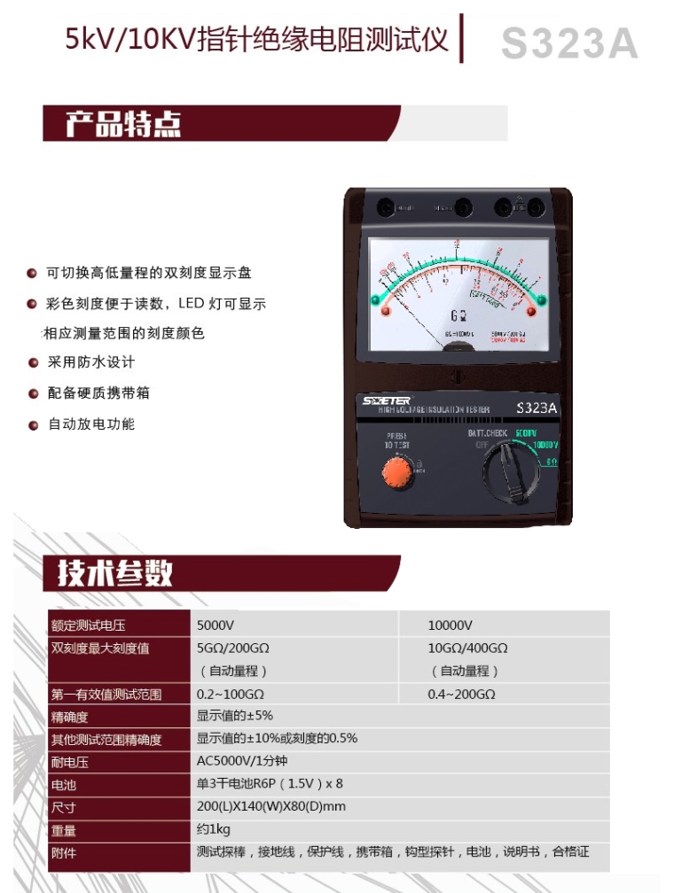 5KV/10KV指针绝缘电阻测试仪S323A