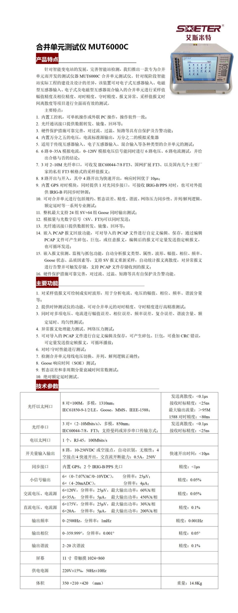 我对您的合并单元测试仪MUT6000C产品感兴趣,请发具体的信息及报价,谢谢!