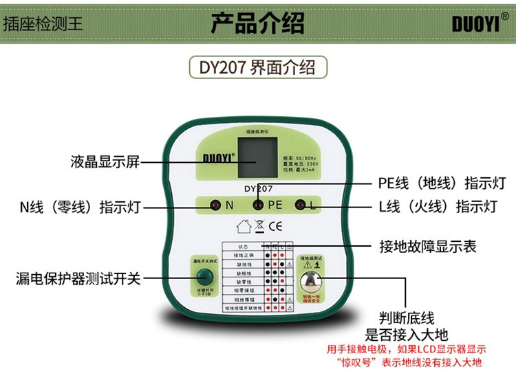 我对您的DY207A插座测试仪产品感兴趣,请发具体的信息及报价,谢谢!
