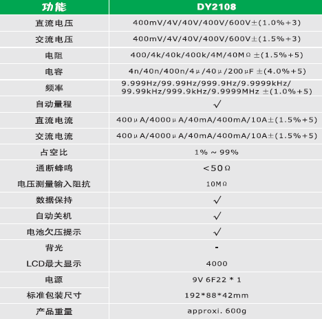 我对您的DY2108自动量程数字万用表产品感兴趣,请发具体的信息及报价,谢谢!
