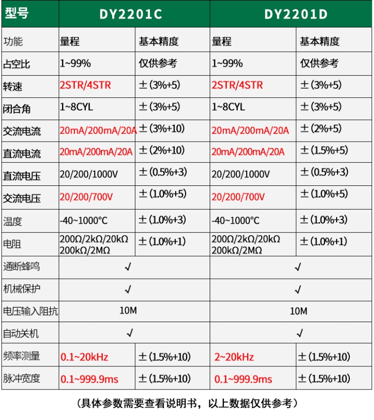 DY2201C多功能汽车检修万用表