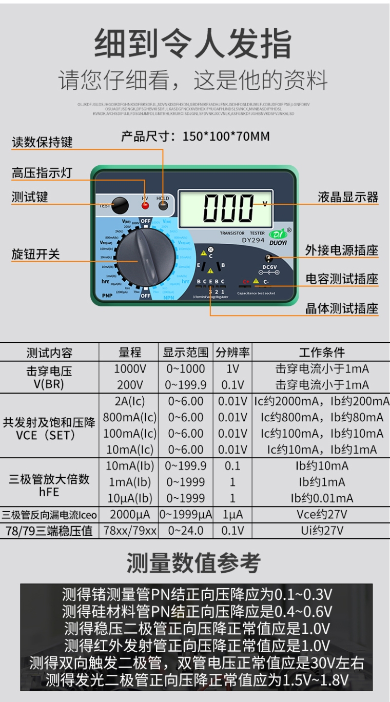 我对您的DY294晶体管测试仪产品感兴趣,请发具体的信息及报价,谢谢!