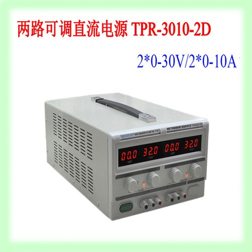 TPR-3010-2D: 2*0-30V/2*0-10A 特点: 1. 外观简洁大方 2. 易于操作,价格实惠 3. 纹波噪音小,可靠性强 4. 具有限流保护功能 应用范围: 1. 用于教学实验,科研 2. 用于电子生产线产品的测试与老化 3. 用于通讯设备的维修 4. 其他需要直流稳压电源的领域 技术参数 输出电压:220V±10% 50Hz 工作温度:-10℃-40℃ 相对湿度<80% 储存温度:-10℃-70℃ 相对湿度<70% 稳压状态: 电压稳定度≤ 0.01%+2mV 负载稳定度≤ 0.2%+2mV 恢复时间≤100us 纹波噪声≤5mVrms (有效值) 温度系数≤300PPM/℃ 稳流状态: 电流稳定度≤ 0.1%+3mA 负载稳定度≤ 0.2%+3mA 纹波噪音≤ 7mArms(有效值) 电压显示精度:三位LED数字显示 ±1%±1个字 电流显示精度:三位LED数字显示 ±2%±1个字