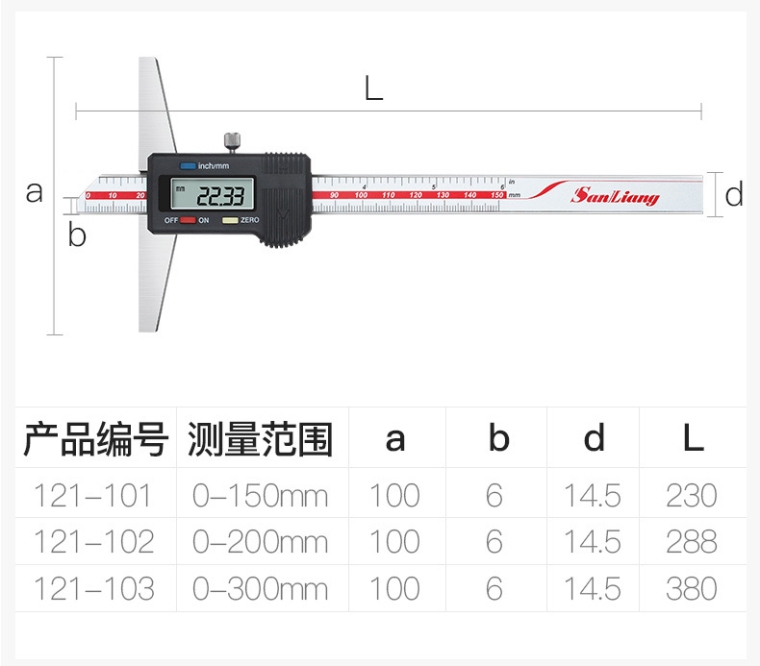 123-123 0-300mm 0.01mm高精度双钩头游标卡尺