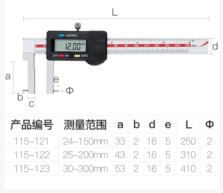 115-211 10-150mm双内钩内沟槽数显游标卡尺