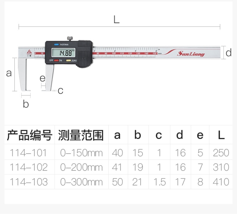 115-123 30-300mm圆头内沟槽数显游标卡尺