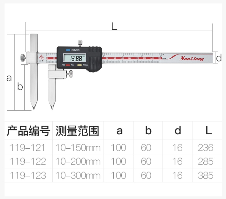 119-123 10-300mm中心距锥测头数显卡尺