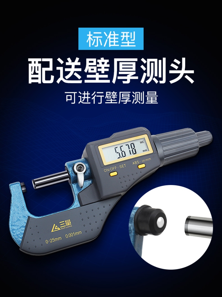 211-131 0-25mm壁厚双圆头数显外径千分尺
