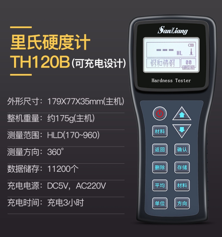 TH-120B里氏硬度计便携式(D型装置+硬度块+锂电充电)可定英文版