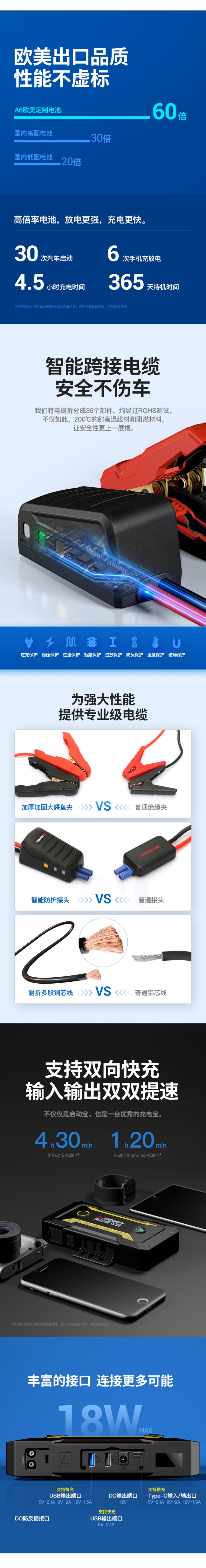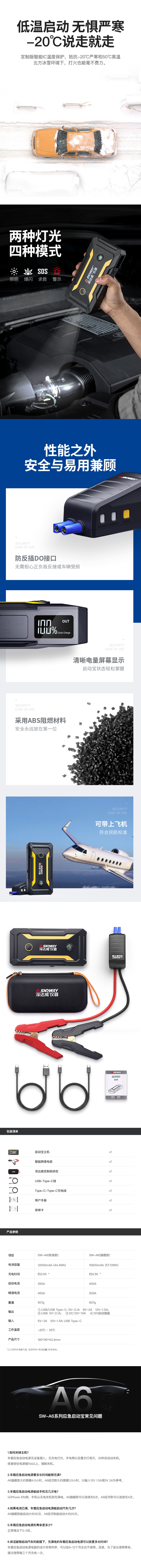 汽车应急启动电源大容量12V移动充电宝车载启动器搭电点火备用电瓶点火SW-A6
