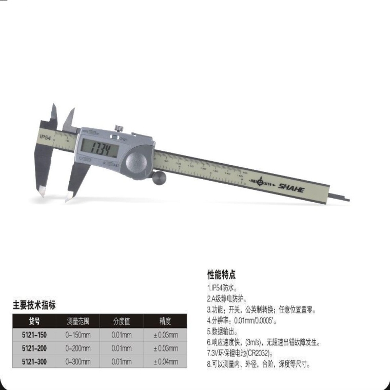 扁头外钩槽数显卡尺0-200mm 5117-200