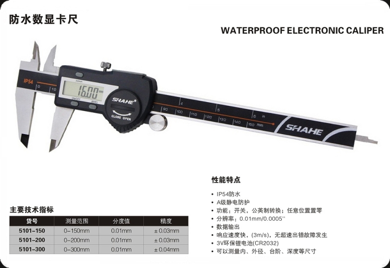 防水数显卡尺0-300mm 5101-300