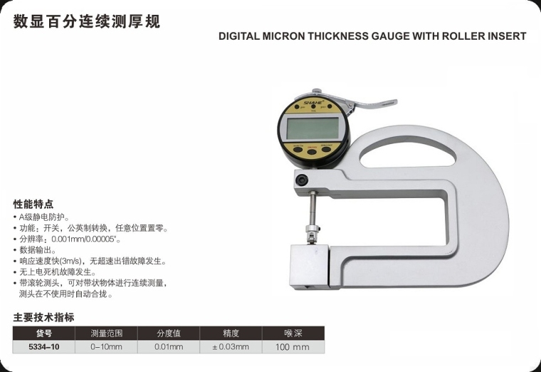 数显百分连续测厚规0-10mm 5334-10
